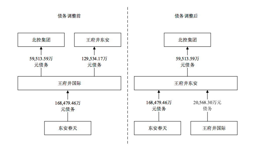 对此,王府井东安方面已给出清偿方案,即采用抵偿的方式,用王府井国际对东安春天的16.85亿元其他应收款偿还等额的王府井国际对王府井东安的债务,从而将东安春天的债权人从王府井国际变为王府井东安。
