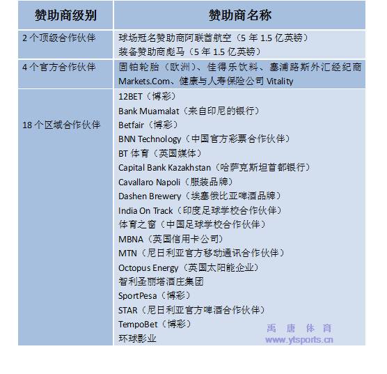 从上表可以看出来,阿森纳每年光从顶级合作伙伴那里,就有6000万英镑的收入。再加上英超联赛转播收入的分成,也让兵工厂的收入不断增加。