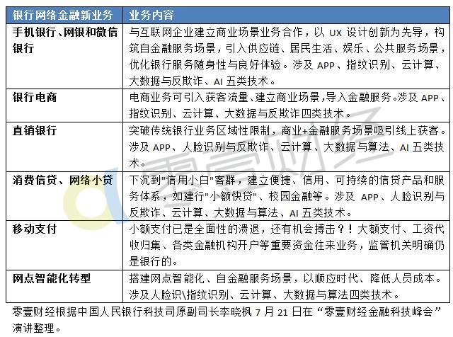今年7月21日"2017·零壹财经新金融夏季峰会——解码金融科技蓝图"上,中国人民银行科技司原副司长李晓枫曾发表演讲称,金融科技在银行的发展,全部问题是围绕着网络金融新业务探索而引入。其对银行的影响,第一阶段用户的体验,第三方支付的APP,第二阶段在线钱包、账户无卡化、网络金融。目前"交易中介"角色受到冲击最烈,"信用中介"角色受到削弱,"资金中介"也在快速脱媒之中。"它们皆祸起Fintech,消弥也要借助Fintech"。