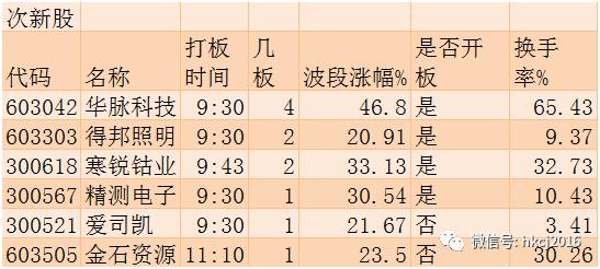 上涨情况:次新股强势的劲头难以维持,临近尾盘,前期龙头纷纷开板,但是仍有多只个股继续维持涨停。