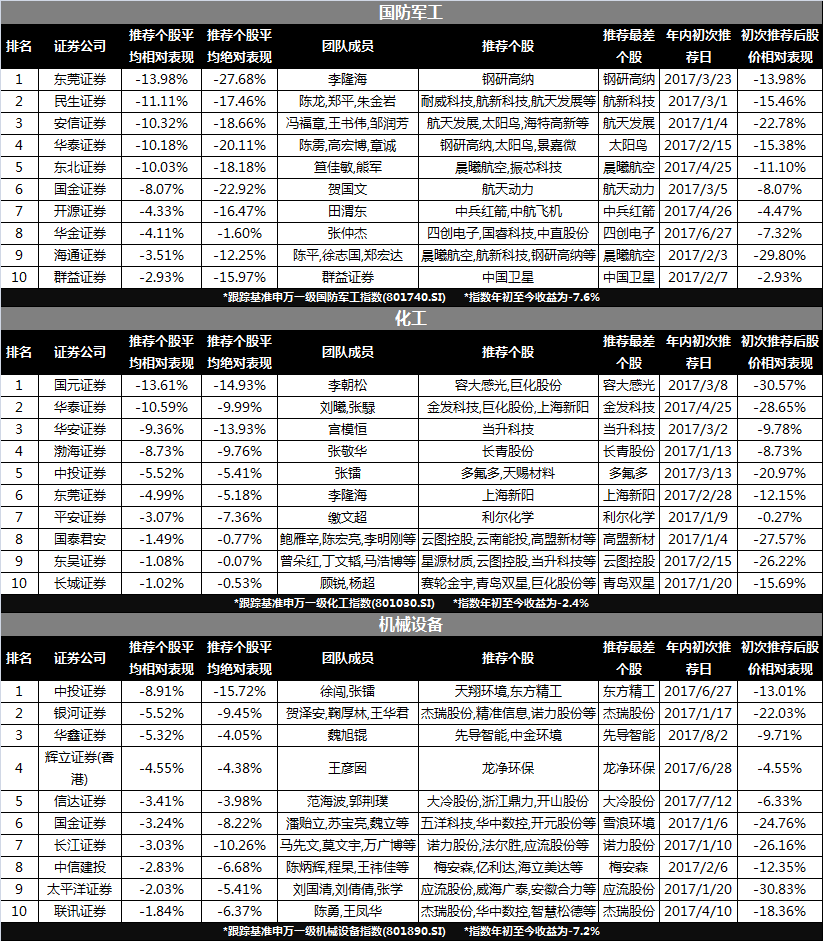 为避免存在偏见,我们从多角度出发,还提供了以相对及绝对收益进行排名的券商黑榜,详见下表。