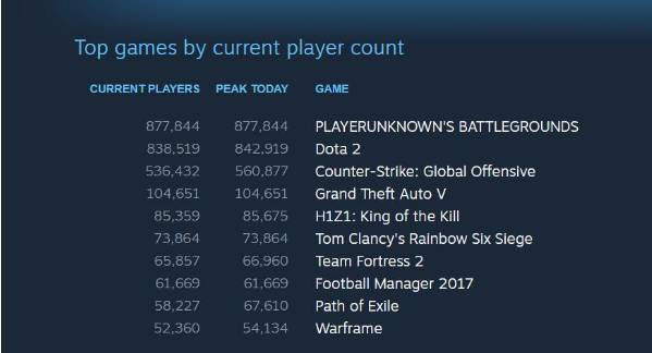 就在上周日,《绝地求生:大逃杀》(下文简称《绝地求生》)同时在线人数首次超过《Dota2》,成为Steam平台同时在线人数最高的游戏产品;除此之外,《绝地求生》在线峰值人数达87万人,超过《Dota2》的83万人。