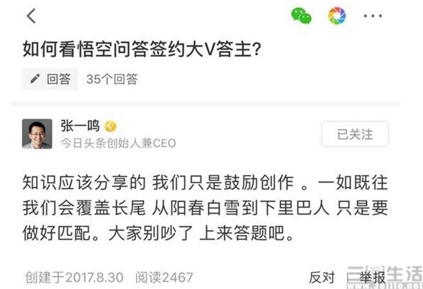 而后续这件事情竟然还惊动了今日头条创始人张一鸣,他表示“知识应该是分享的,我们只是鼓励创作”。其实这样反而是正确的,因为即使是再多钱,也砸不出一个知识分享平台的健康发展。
