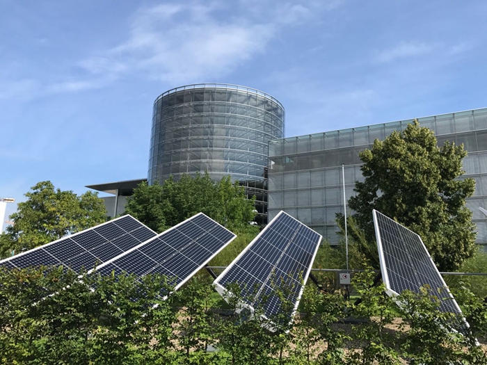 作为大众未来移动出行中心,德累斯顿透明工厂还肩负着对EV电动车的推广。工厂园区内的电动出行充电站(e-Mobility Station)内大众最新研发的高速充电桩可以为客户进行免费充电,6块太阳能电池板为充电站提供源源不断的清洁能源。
