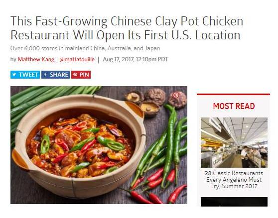 黄焖鸡米饭进军美国,计划3年开1000家门店(杭州网)