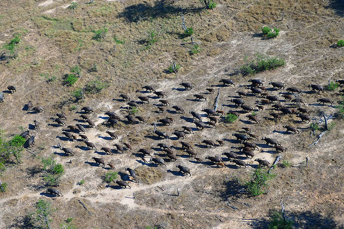 19. 乘坐动力三角翼巡逻,志愿者们可以很清晰看到地面的情况。这是志愿者从空中拍到的非洲野牛。