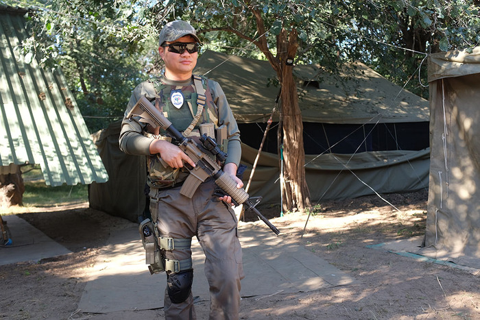 17. 盗猎分子一般都携带枪支,所以任何巡逻都是有危险性的,志愿者全副武装在营地外巡逻。