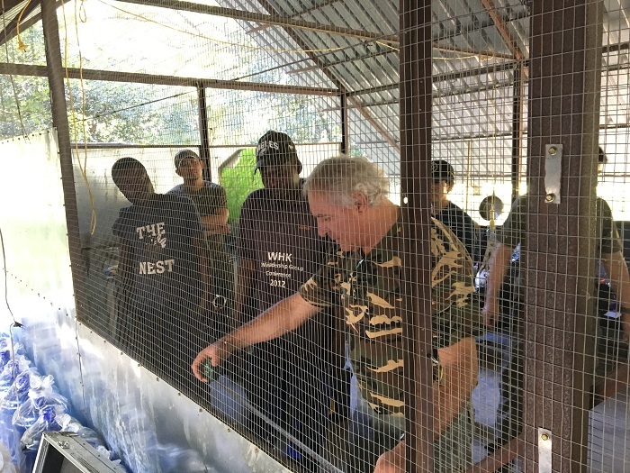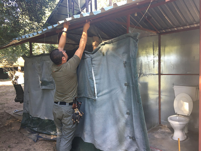 23. Francesco说,如果厕所不装上遮挡物,狮子可能会因为好奇而冲过来。所以,志愿者们用帐篷布遮挡视线。