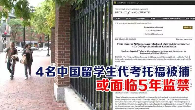 根据波士顿联邦法院检方数据,Shikun Zhang、Leyi Huang和Xiaomeng Cheng三人疑似因为托福成绩未达到学校要求,而支付进$7,000美元让在麻州霍尔特国际商学院(Hult International Business School)就读的Yue Wang替考。Yue Wang在收取费用后,分别在2015年和2016年为他们替考。四个人均持有学生签证。事情败露后,四人在今年5月被捕。