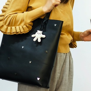 M28米奇质臻系列是仅在兴业太古汇店发售的主推款,也是中国市场限定。这个系列包袋中迪士尼的夸张元素被弱化,以黑色为主色调,包上排列着小小的米奇头像和米奇手套挂饰,包型也是双肩包、托特包等实用包型。从商品模特图来看,白领女性背着上班也不算突兀。定价与一些轻奢品牌差不多,售价1000元至4000元人民币不等。