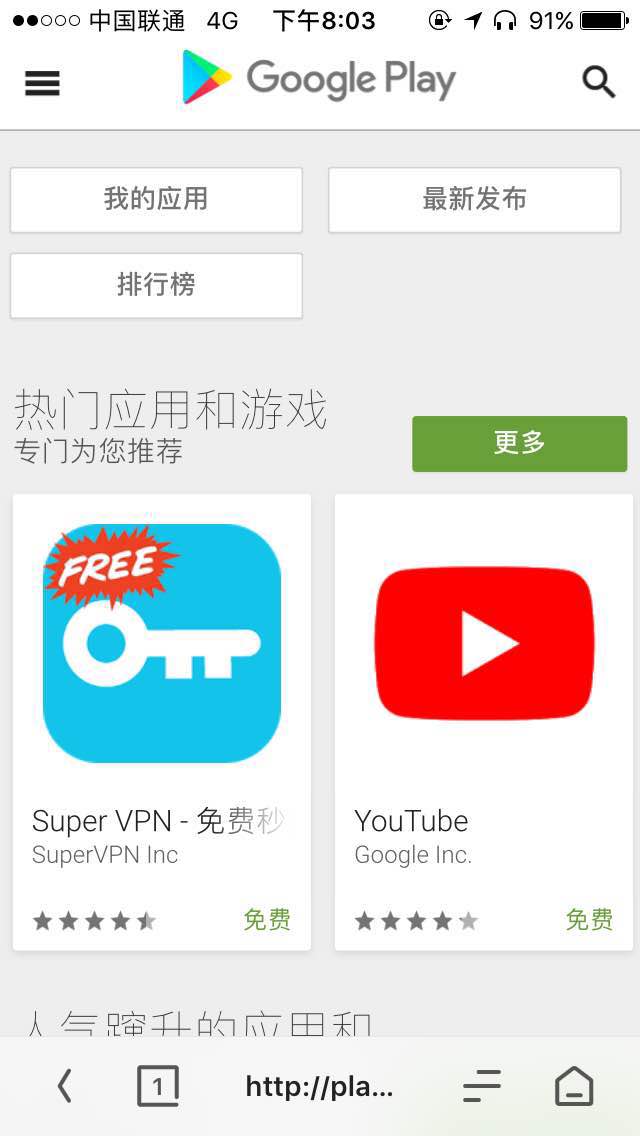 9月2日,Google安卓应用商店play.google.com,在中国部分地区已可访问打开,但连接不稳定。