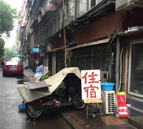 医院旁边小街上,打着住宿招牌的家庭旅馆。 张舒 摄