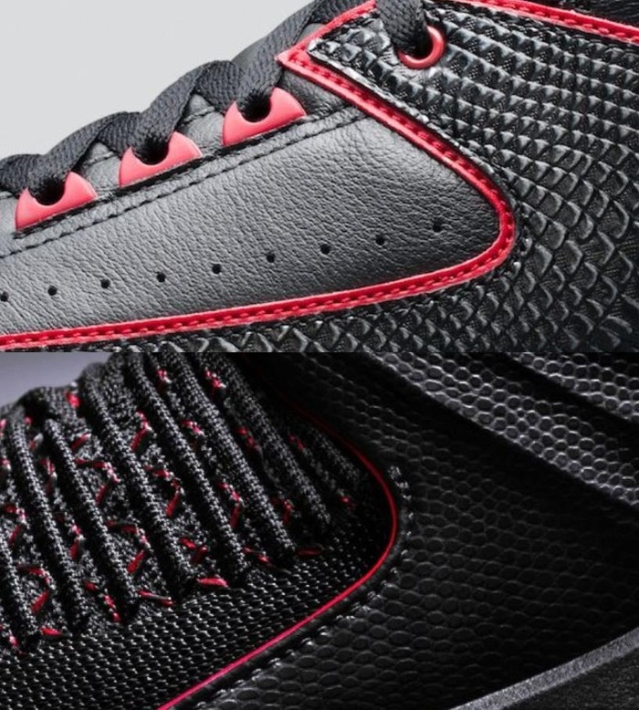 5. 1980年代,泡沫中底与皮革面料是篮球鞋的标配。直到Air Jordan 2的出炉,带领意大利工艺入驻篮球鞋领域。与Air Jordan 2一样,新鞋履的鞋带区域附近,采用了鬣蜥皮与蛇皮材质。