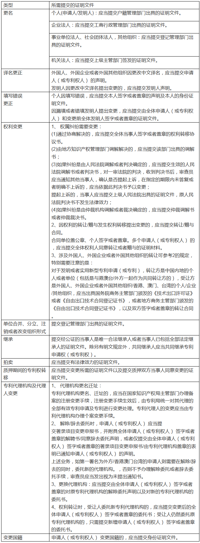 二、 各种变更具体需要的文件:著录项目申报书+著录项目证明文件