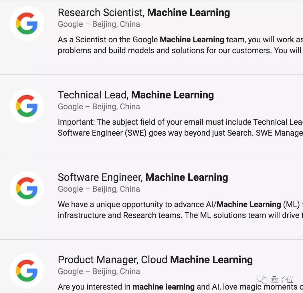 官方信息显示,Google正在为北京团队招募四大机器学习相关的岗位,包括: