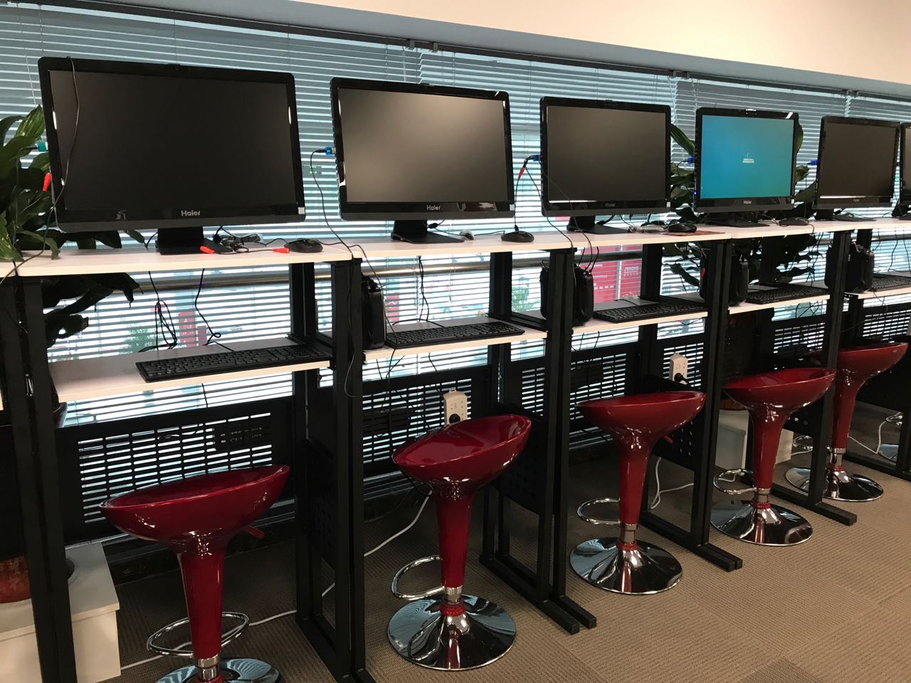 一楼大厅中展示了京东的无人机机型,从第一代旋翼机到现在的主力机型“Y3”。二楼有数十台无人机模拟器供学员进行模拟飞行,当阴雨天不能进行飞行时,四名教员就在这里进行教学。负责人告诉记者,这些学员从全国各地应召而来。