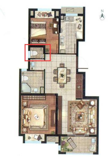 侧卧的人上厕所动线也不短,要穿过整个客厅,2个厕所还做那么近,不过这道也不是大问题。