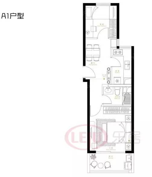 这是个2室62.24平米(建面)户型,进门对着厨房。长方形的户型,就很像老式房的户型,进深又长。做了南北2室,白天中间部分就会很黑。至于客厅的电视机放在哪里么,大概挂在某一面墙上吧。