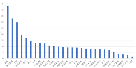 行业方面,涉及的28个申万一级行业个股平均涨幅均为正数,但是涨幅差距较大。其中钢铁、有色金属、采掘等三大周期股行业成功包揽前三甲,平均涨幅分别高达43.12%、33.00%和29.72%;非银金融与银行两行业表现亦十分出色,分别以19.01%和16.87%的平均涨幅位列第四和第五位。周期股的另一代表化工行业则紧随其后排名第六,平均涨幅为14.58%。与此同时,传媒行业个股表现居于末位,平均涨幅仅为1.41%,公用事业和家用电器行业的表现也不是很理想,平均涨幅分别为2.81%和3.29%。