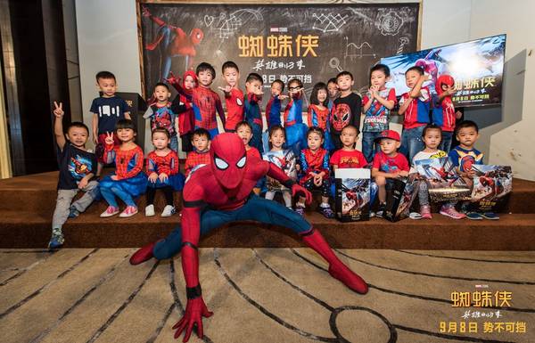 9月5日讯,由美国哥伦比亚影片公司和漫威影业联合出品的好莱坞科幻冒险动作巨制《蜘蛛侠:英雄归来》在京举办了一场别开生面的“新生见面会”。现场一百多名小粉丝纷纷穿着蜘蛛侠战衣出现,并在蜘蛛侠到来之后和他亲密互动。当蜘蛛侠以一系列帅气动作出现之后,“小粉丝”立刻激动迎接,高呼“蜘蛛侠,我爱你”。