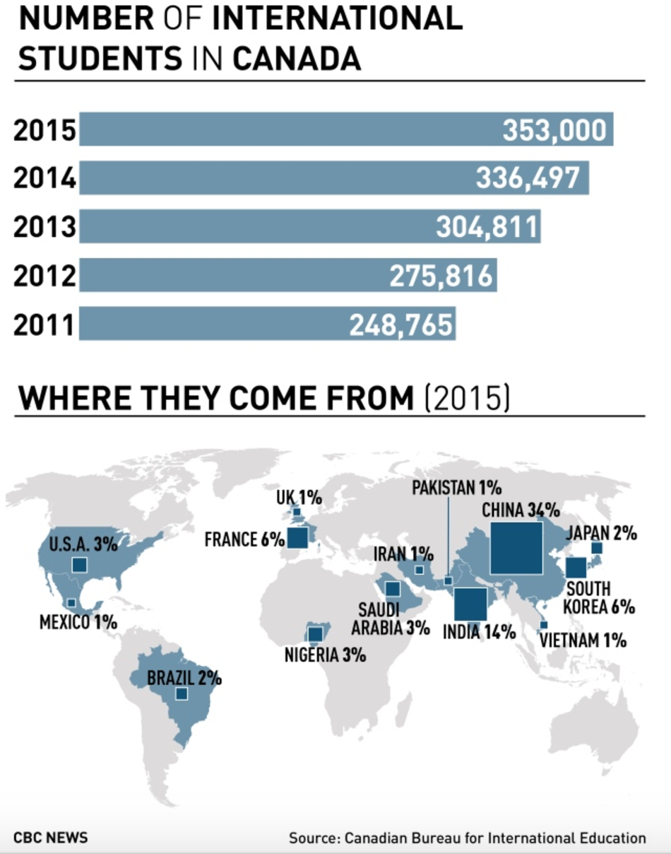 同时,根据加拿大国际教育局的数据,小学和中学的国际学生人数也在增加。