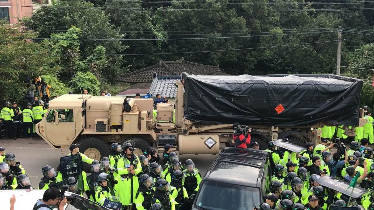 当地时间7日早上,此前运抵韩国的萨德反导系统剩余四台发射车以及相关物资运抵星州高尔夫球场,萨德系统正式完成在韩国部署。当地民众从前一天下午开始在距离部署地最近的村庄韶成里集结,经过彻夜和警方的对峙,依旧未能阻挡萨德发射车进入部署地。在彻夜进行的当地民众与警方对峙中,数十名当地民众受伤。