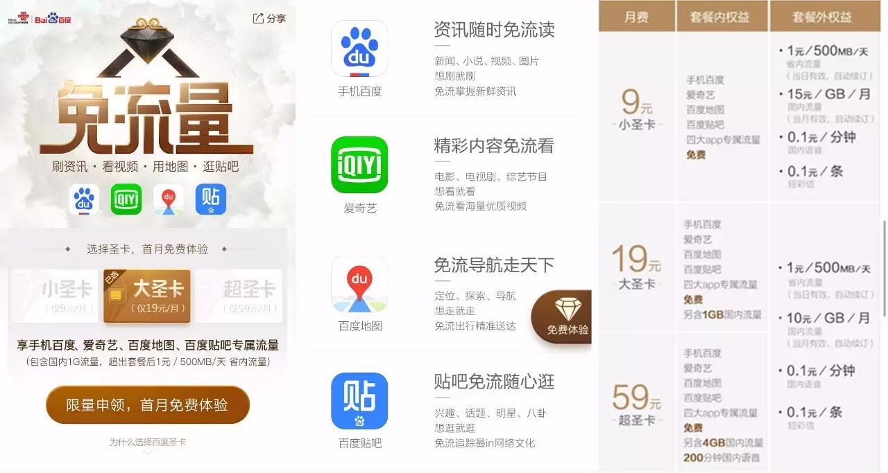 互联网公司推出流量卡,无论是腾讯的王卡,还是百度这次推出的圣卡,其实都是以一种相对性价比较高的方式,获取新的用户(留住客户),只不过以前是通过线上的流量购买,现在是通过运营商流量补贴的方式,其实道理都是一样,为了流量,然后绑定自己的产品,强化彼此之间的区隔。