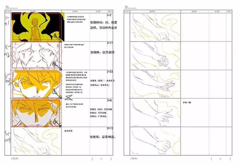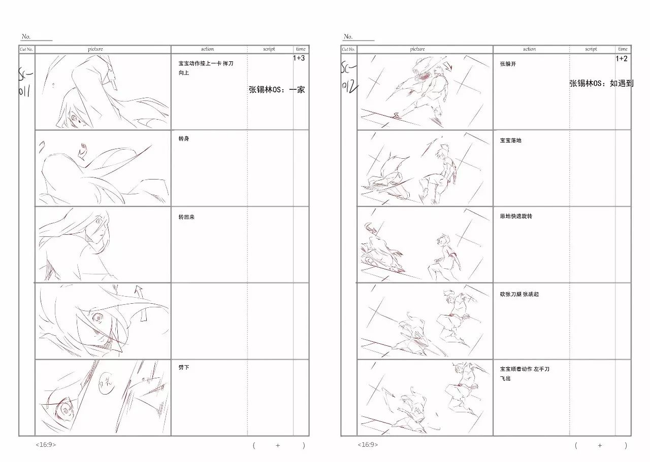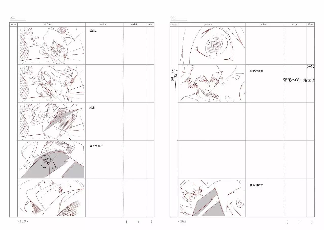 接下来我们来看《一人之下》第一季第二集的一段分镜。我在画分镜的时候有一个很重要的习惯,就是我想表达的所有东西,包括动作和情绪,我希望在分镜上尽可能都能表达出来,这就是我之前说的演出的概念。