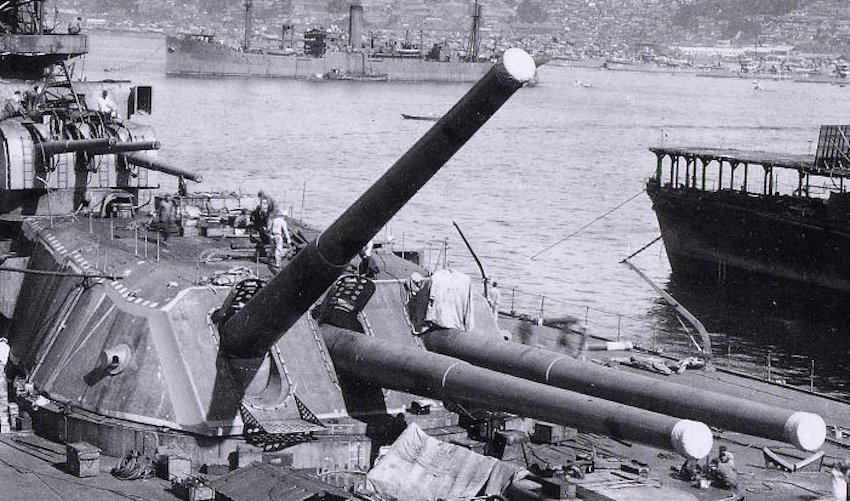 日本的18.1英寸(460毫米)舰炮是海战历史上最大的舰炮,装载在大和级战列舰上。这种炮的炮弹重1.5吨,射程超过26英里(42公里),并且在装上炮塔后,其重量堪比当时一艘常规的驱逐舰。
