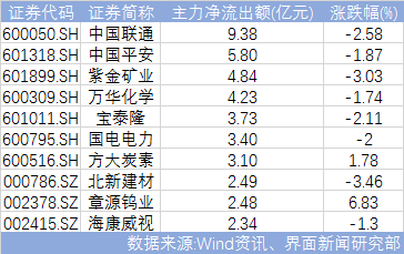 图:主力净流出十大个股