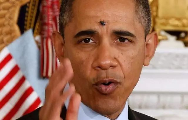 一只苍蝇飞到奥巴马的额头上,当时他正在白宫国宴大厅发表讲话,这张照片曾是2013年最经典的照片之一。