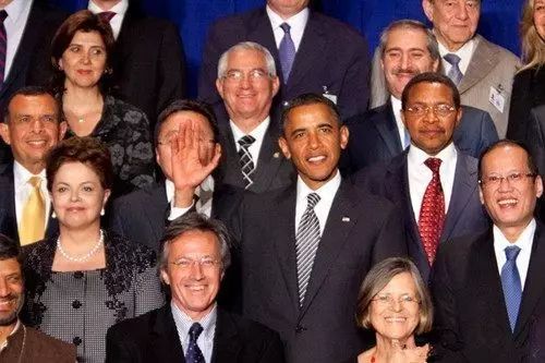 参加联大会议的多国领袖合影时,奥巴马突然挥手,挡住了一旁蒙古总统的脸,被批外交失礼。