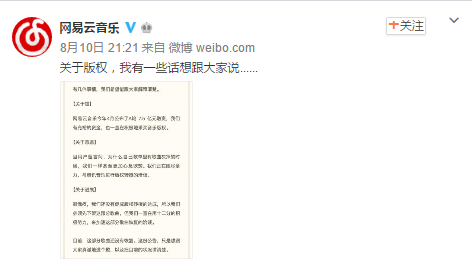 此前,据网易云音乐官方公告称,由于与多家数字音乐版权转授者的合约到期,在总曲库超过1000万首音乐资源中,约10万首歌曲下架,占总曲库量的1%。