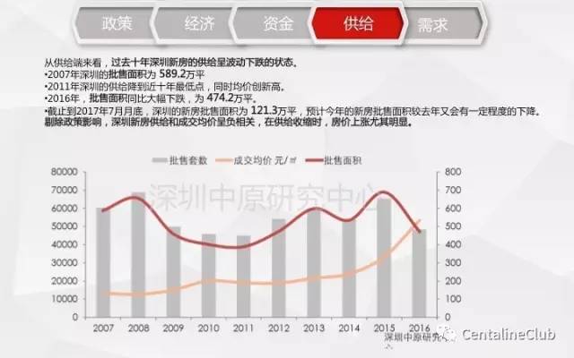 从供给端来看,过去十年深圳新房的供给星波动下跌的状态。