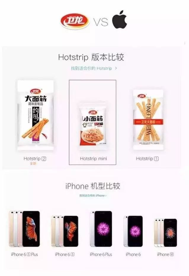 在大众眼里,同行间的这种复制是低端的抄袭,但辣条和手机之间的强烈反差,却成了“喜闻乐见”的向苹果致敬的方式。