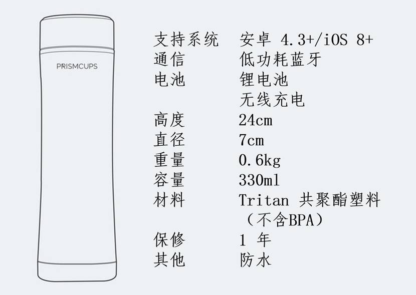 但!PRISMCUPS 还可以和 Amazon Echo, iPhone Healthkit 和 Google Fitness 连接。