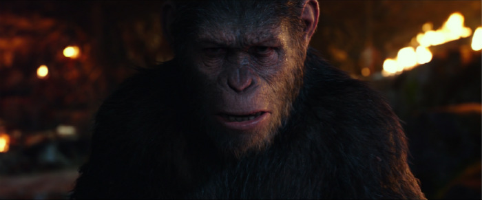 到了《猩球崛起3:终极之战》中,更多的画面放在了凯撒对于复仇、大爱、种族延续等更加深层的问题的理解与反思。作为领导猿族踏上寻找家园之路的领袖,凯撒需要表现的不仅仅是简单的喜怒哀乐,复杂的情绪在脸上,每一个细微的表情稍有差池,传递出的信息便会与观众的理解大相径庭。