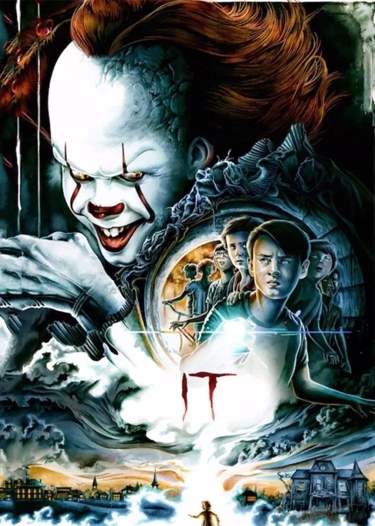 影片《小丑回魂》改编自恐怖大师斯蒂芬·金1986年出版的同名畅销小说。1990年曾被汤米·李·华莱士导演搬上过大屏幕,那个身披死亡阴影的邪恶小丑Pennywise曾是一代人心中挥之不去的心理阴影。