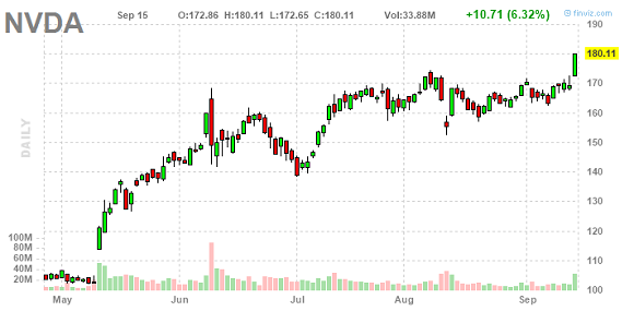 截至周五美股收盘,英伟达大涨逾6%创收盘纪录新高,报180.1美元。而在最近一年中,该公司股价累计涨幅达到了惊人的200%。