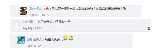 对此,有网友评价,“这大米吃了是会升仙还是能饱一年?”“城里人真会玩”“所以第一镰头米会比后面的好吃?那后面的米还买来干啥?”
