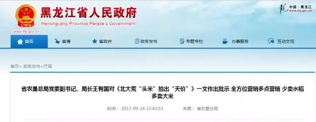 除此之外,农场此举还获得了黑龙江省农垦总局党委副书记、局长王有国的批示,“很有创意,大力宣传,全方位营销,多点营销,少卖水稻,多卖大米! 江川农场值得表扬。”