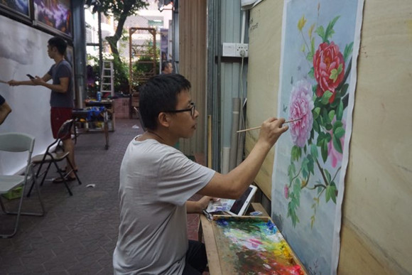 大芬油画村位于深圳龙岗区,像邓进建一样的墙面画廊画工不下300人,加上其他画工总数超过3000人,如果算上裱画工、画商在内的油画从业者,人数已近万。
