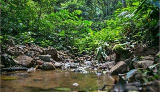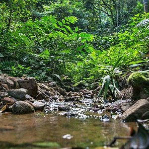 此时,云开雾散,金色的阳光透过茂密的丛林一泻而下,山泉叮咚,百鸟鸣唱。