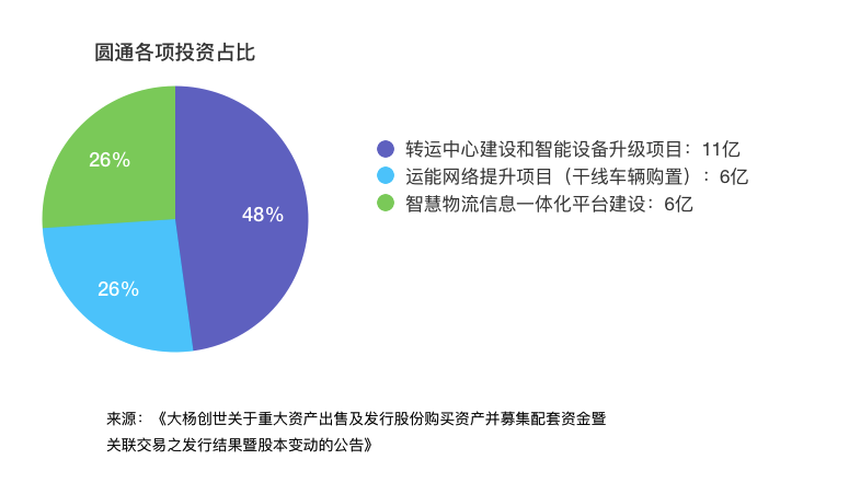申通上市时发行募集资金总额为48亿元,扣除发行费用后主要用于四大项目,投资金额与占比如下: