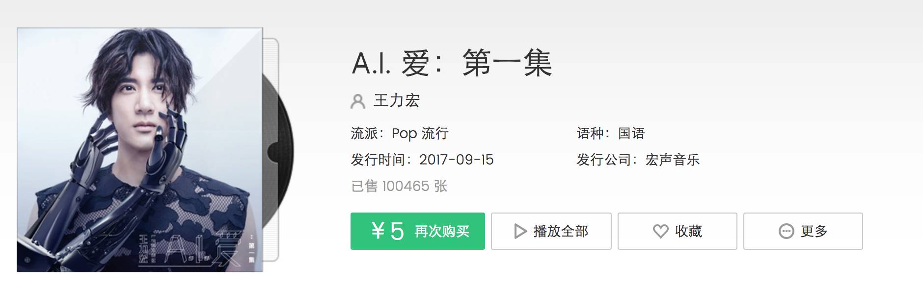 互联网时代下的音乐产业,每天都有几个歌手、音乐人过气,这次“过气”的是王力宏。时隔两年之后,为了与时俱进的王力宏发行了自己的首张 mini 数字专辑《A.I.爱》,自9月15日正式上线以来的4天时间里,专辑销量刚过10万张。