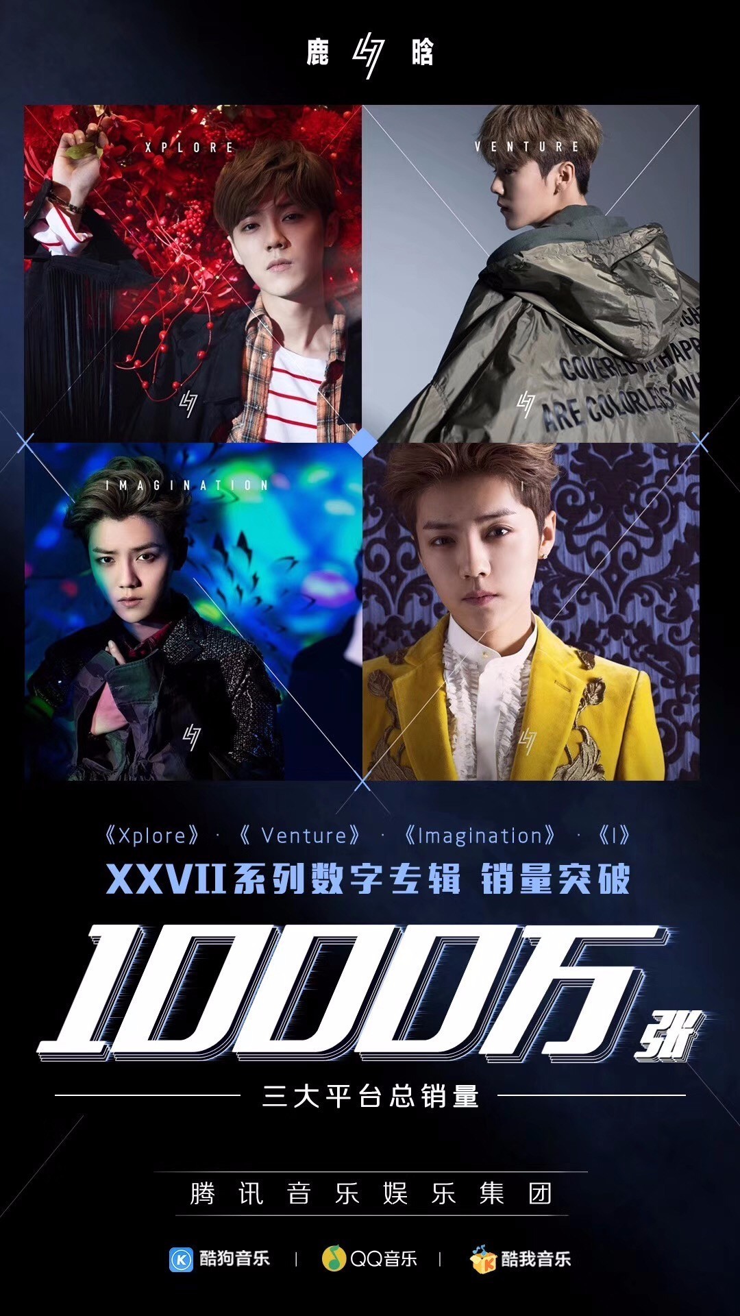 也是在今天上午,鹿晗的系列概念专辑XXVII,在QQ音乐、酷狗音乐、酷我音乐三平台累计销量已经突破1000万张,创造了一个中国数字音乐的历史。