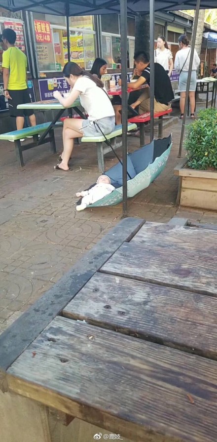 必要的时候,溜娃可以采取拖拽、捆绑方式,既能防止孩子乱跑乱叫影响他人,也有利于培养孩子与世无争、逆来顺受的性格。▼