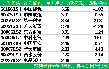 中国建筑(601668.SH)、中国联通(600050.SH)等两只中字头个股今日遭遇主力大幅抛售,其主力净流出额分别为5.66亿元、3.91亿元。值得注意的是,与京东金融闹上“绯闻”之后,第一创业连续两日涨停,而之后主力资金便纷纷套利出逃。该股已连续两日登上主力净流出榜前列,今日再度净流出3.84亿元。此外,保险股今日遭遇下挫,中国平安(601318.SH)、西水股份(600291.SH)遭遇大额主力净流出,分别为2.45亿元、2.20亿元。