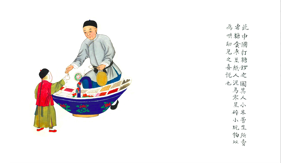 其人小本营生,所卖者糖、枣、豆食,零星碎小玩物,以为哄幼孩之悦者也。