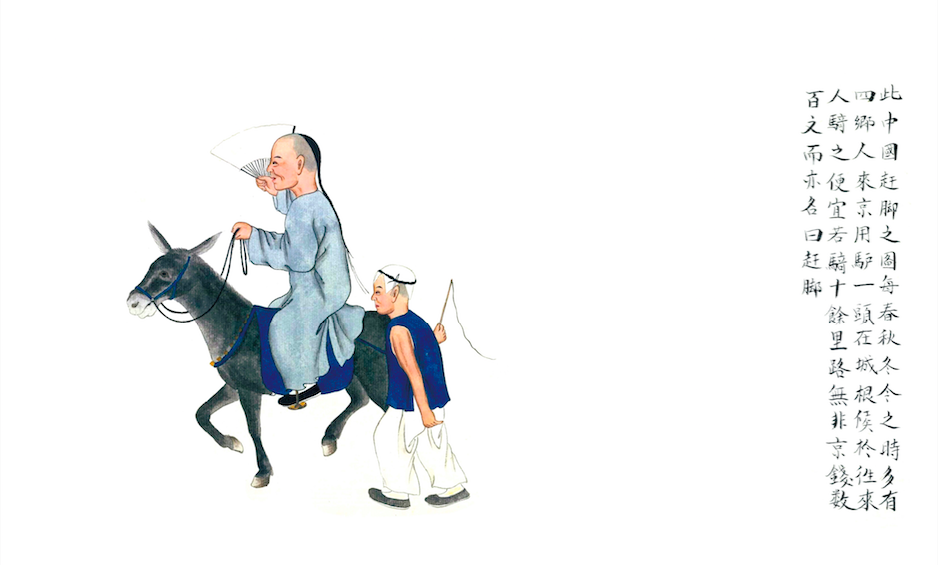 每逢春秋冬令之时,多系四乡之人来京,用驴一头在城根于来往人骑之便宜,若骑十余路,无非京钱数百文,名曰赶脚。
